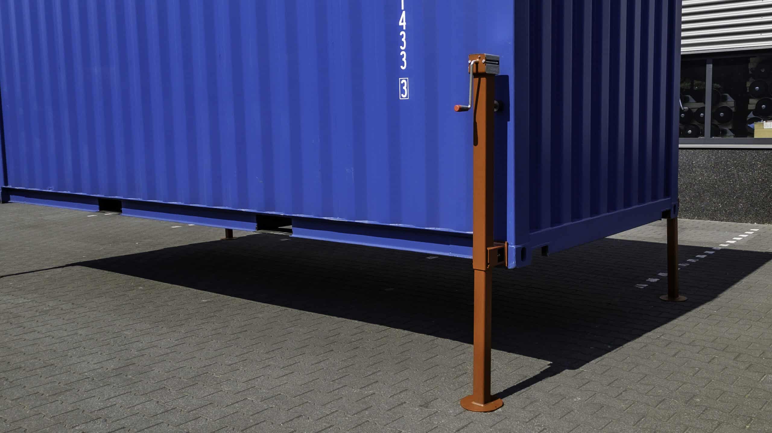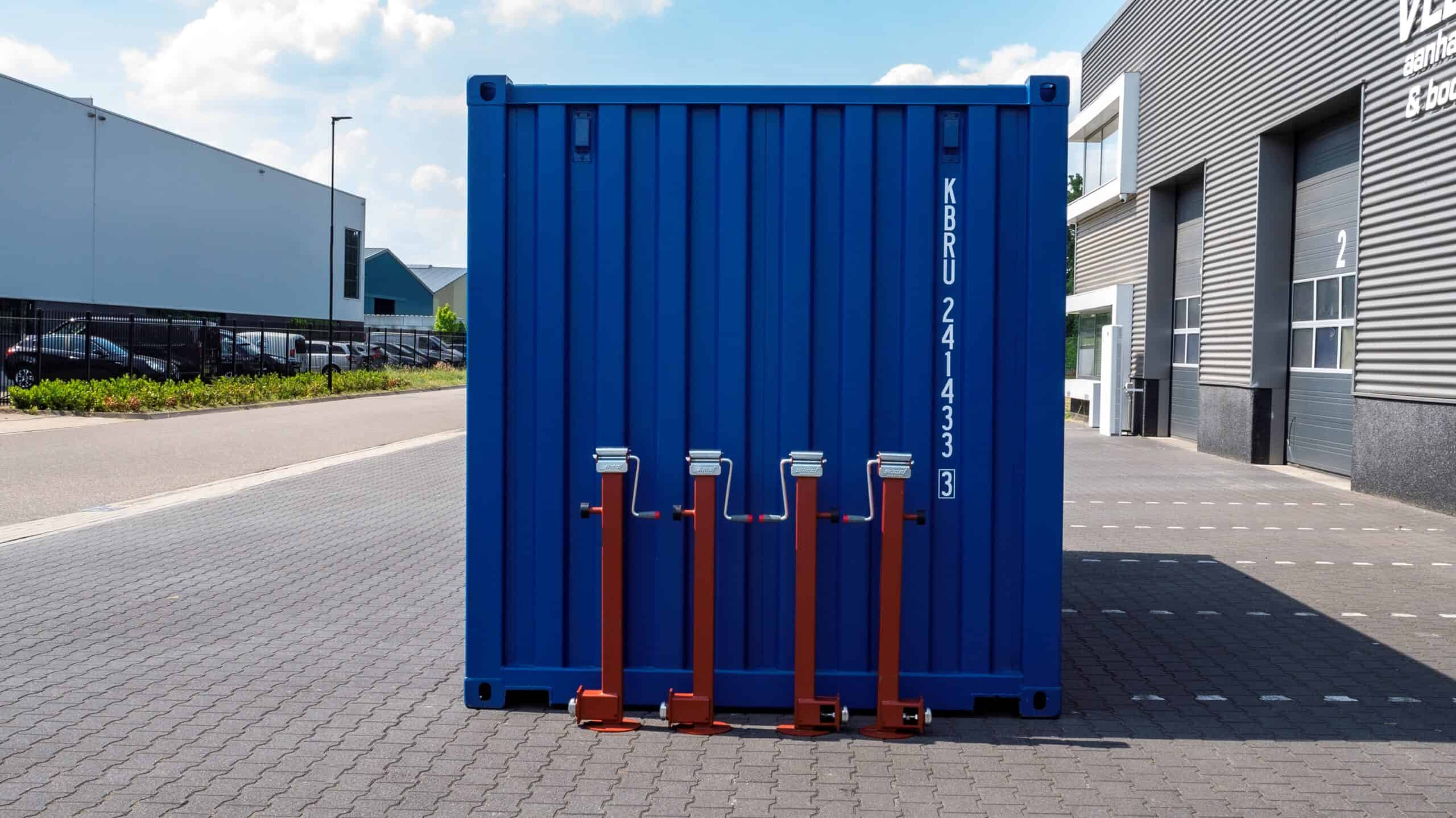 De set bestaat uit vier container steunpoten die samen een hefvermogen hebben van 4500 kg. Dit maakt de steunpoten geschikt voor zowel 10FT als 20FT containers. Je bespaart tijd, kosten en planning, omdat je niet afhankelijk bent van externe hulpmiddelen zoals een kraan of heftruck.